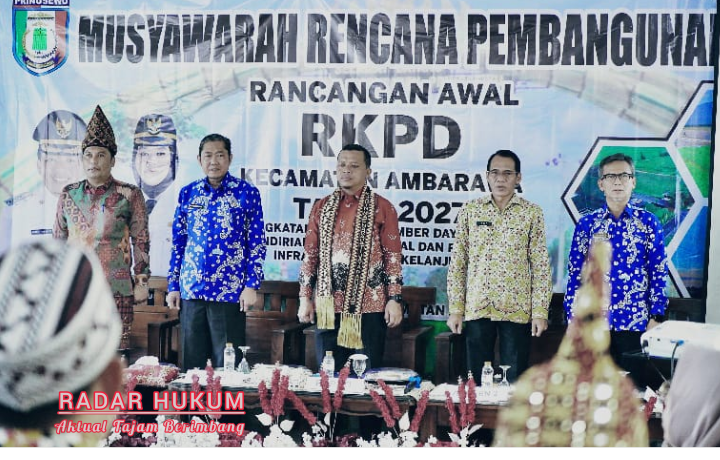 Bupati Pringsewu, H.Riyanto Pamungkas menghadiri Musyawarah Rencana Pembangunan (Musrenbang) Tingkat Kecamatan Ambarawa dalam rangka penyusunan Rencana Kerja Pemerintah Daerah (RKPD) Kabupaten Pringsewu Tahun 2027. Kegiatan berlangsung di Aula Palagan Ambarawa, Kantor Camat Ambarawa, pada Kamis (12/2/2026).