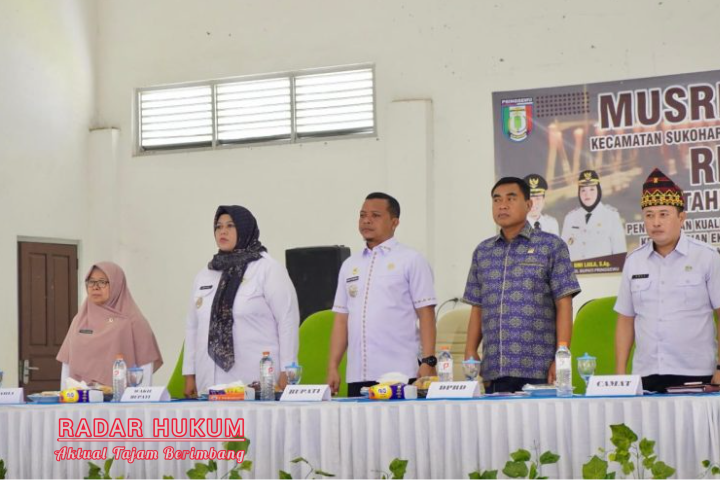 Bupati Pringsewu, Riyanto Pamungkas, bersama Wakil Bupati Umi Laila, menghadiri Musyawarah Rencana Pembangunan (Musrenbang) Kecamatan Sukoharjo dalam rangka penyusunan Rencana Kerja Pemerintah Daerah (RKPD) Kabupaten Pringsewu Tahun 2027. Kegiatan ini dihadiri oleh berbagai pihak, termasuk jajaran pemerintah daerah, kecamatan, pekon, unsur pimpinan kecamatan (uspika), serta anggota DPRD daerah pemilihan setempat.