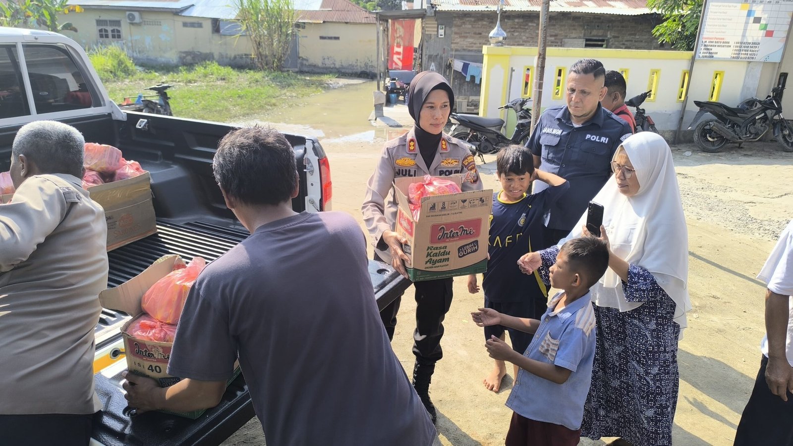 “Kegiatan ini merupakan bentuk kepedulian kami terhadap masyarakat. Pembuatan tanggul dan pembagian sembako kami lakukan sebagai upaya meringankan beban warga sekaligus mencegah kejadian serupa di kemudian hari,” ujar AKP Jonni.