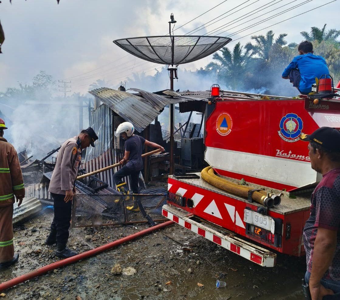 Kebakaran hebat menghanguskan sebuah bengkel motor di Jalan Asahan KM 8, namun respon cepat Polres Simalungun melalui Polsek Bangun berhasil menyelamatkan korban dan mengamankan lokasi kejadian. Dalam hitungan menit setelah menerima laporan, Kapolsek beserta anggota sudah tiba di lokasi untuk membantu pemadaman dan evakuasi.
