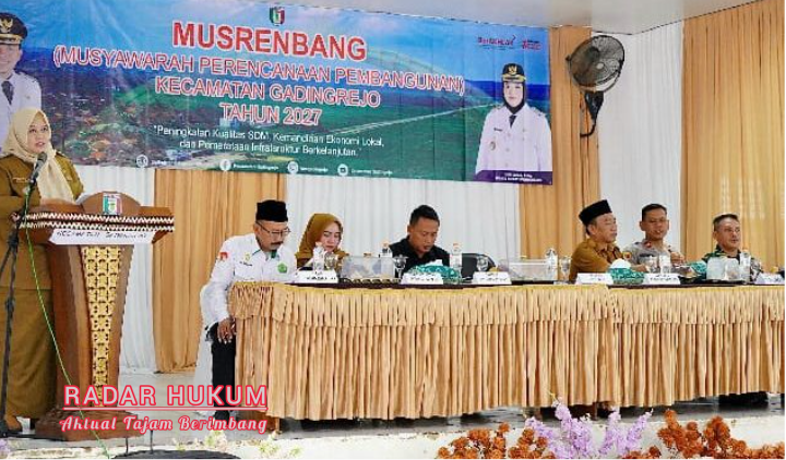 Musyawarah Rencana Pembangunan (Musrenbang) dalam rangka penyusunan Rencana Kerja Pemerintah Daerah (RKPD) Kabupaten Pringsewu Tahun 2027 Tingkat Kecamatan Gadingrejo, secara resmi dibuka oleh Wakil Bupati Pringsewu Umi Laila di Gedung Serba Guna (GSG) kecamatan setempat, pada Senin (9/2/2026). Kegiatan ini menjadi bagian penting dalam proses perencanaan pembangunan daerah untuk tahun depan.